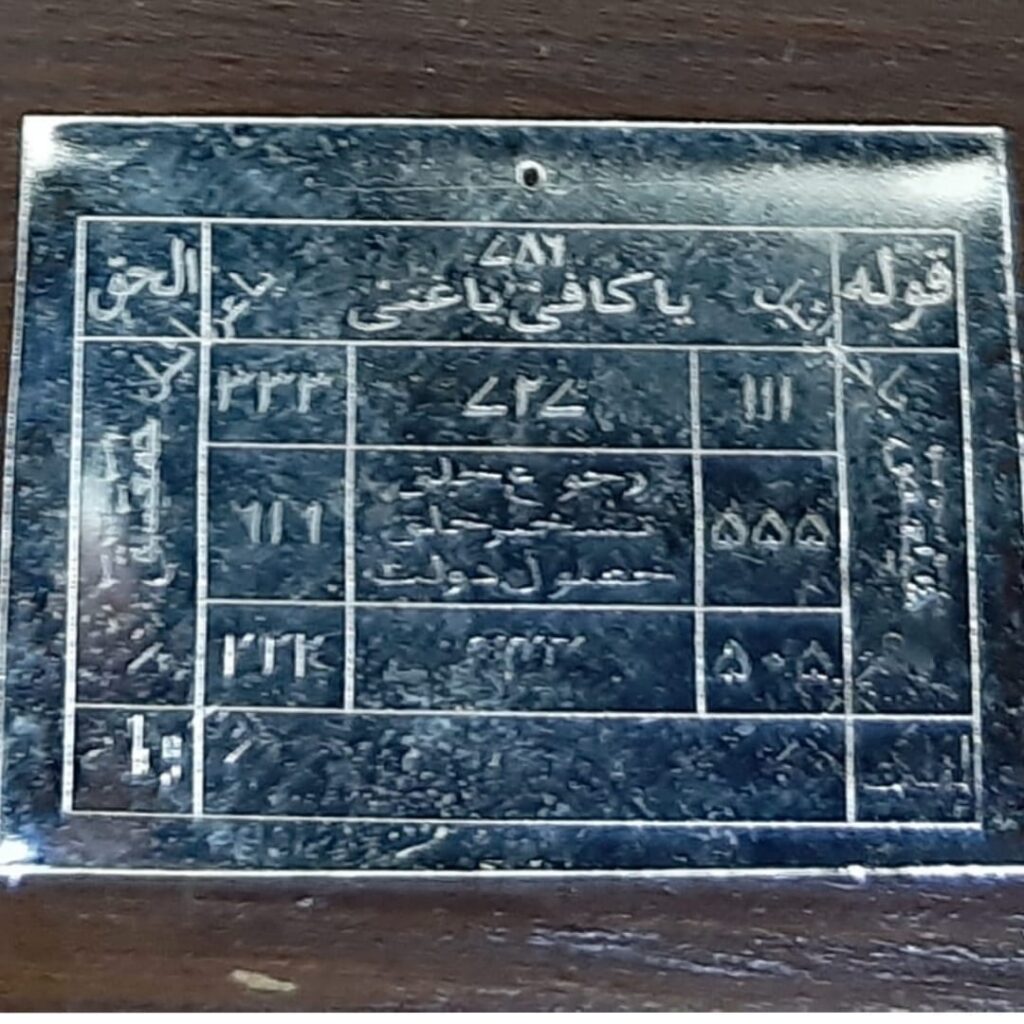 غیبی اسباب کے لیے یہ موئثر ترین لوح ہے رزق میں برکت و کاروباری ترقی کے لیے، حصول روزگار اور حصول مال و دولت کے لیے بہت ہی زبردست لوح ہے خاص وقت میں تیار کی جاتی ہے